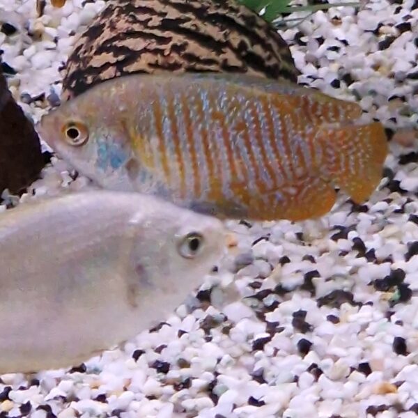 - Dwerggourami’s zijn vreedzame vissen die goed gedijen in een rustige gemeenschapsaquariumomgeving. Het zijn labyrintvissen en ademen lucht aan het wateroppervlak.